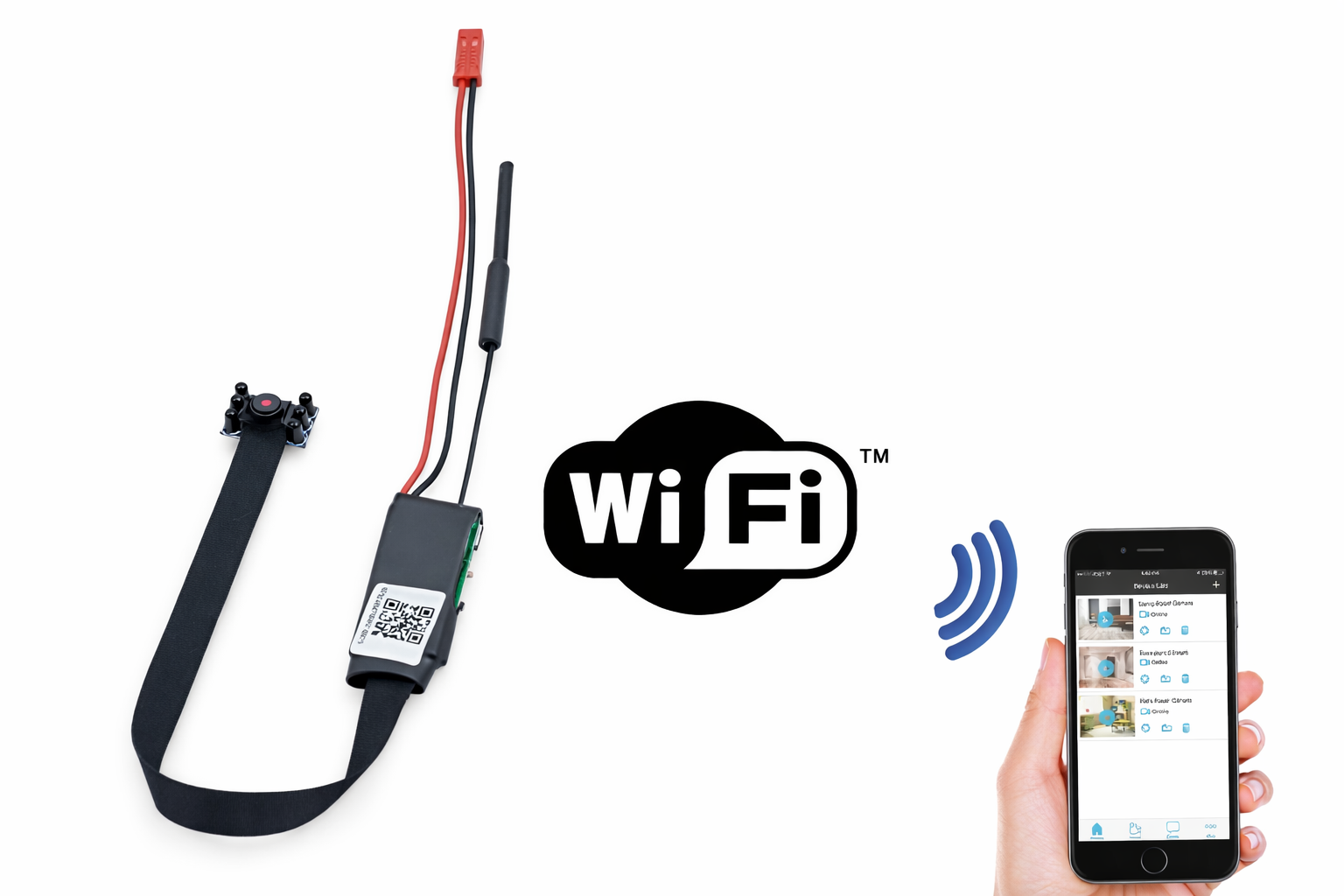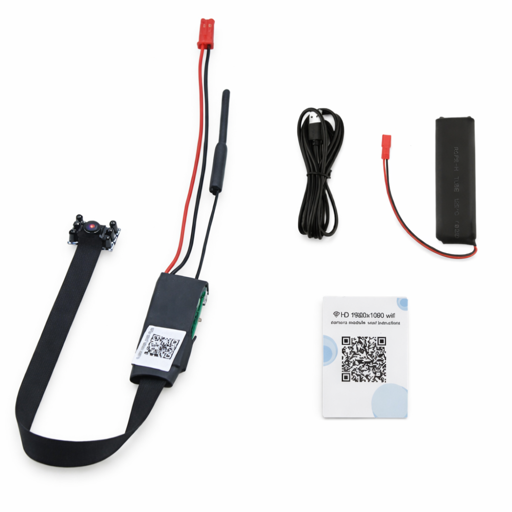 Das Wi-Fi Nachtsichtkameramodul ist vor allem aufgrund seiner Bildqualität eines unserer besten Kameramodule. Die Funktionen umfassen Videoaufzeichnung, Bewegungserkennung, Nachtsicht und fotografieren. Die Kamera ist mit einer Videoauflösung von 1080P ausgestattet. Die Wi-Fi-Videoauflösung liefert qualitativ hochwertige Bilder, die auf einer Speicherkarte mit bis zu 64 GB gespeichert werden können. Mit einem leistungsstarken Akku können 3 Stunden aufgezeichnet werden oder Sie können dieses Modul in eine Energiebank einstecken. Das Kameramodul eignet sich zur Sicherung von Büros und Wohnungen. Miniaturkameramodul mit der Möglichkeit, Signale über WLAN an ein Mobiltelefon oder Tablet zu übertragen. Da die Bildübertragung direkt über WLAN funktioniert, benötigen Sie keinen speziellen Empfänger und können das Bild direkt auf Ihrem Smartphone empfangen. Für das Modul gibt es eine kostenlose iPhone / Android-App. Dank seiner Miniaturabmessungen kann dieses Modul leicht getarnt werden. Das Modul eignet sich auch zum Einbau in eine Vielzahl von Elektronikgeräten. Über Ihr Smartphone können Sie überall auf der Welt eine Verbindung zu einem Kameramodul herstellen. Mit der Bewegungserkennung verpassen Sie keinen Moment mehr und lassen jede Bewegung aufzeichnen. Dieses Kameramodul verfügt über ein ausgeklügeltes Nachtsichtsystem mit 4 IR-LEDs.